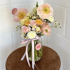 Our Posy Jar is full of the sweetest seasonal blooms & finished off with trailing ribbon to match.